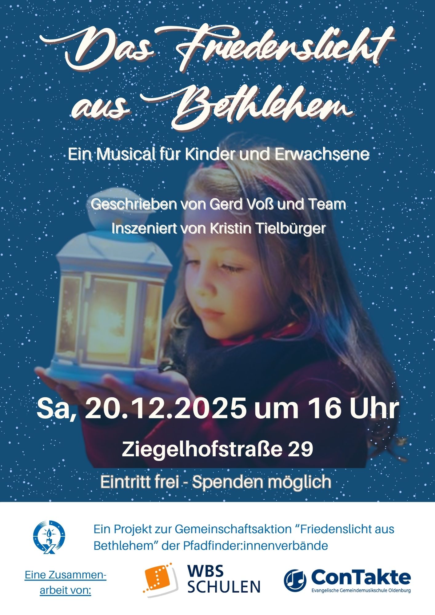 Das „Friedenslicht aus Bethlehem“ ist ein Musical für Kinder und Erwachsene aufgeführt von Schüler:innen der Musikschule ConTakte unter Mitwirkung der Pädagogik-Klasse der WBS Schulen.